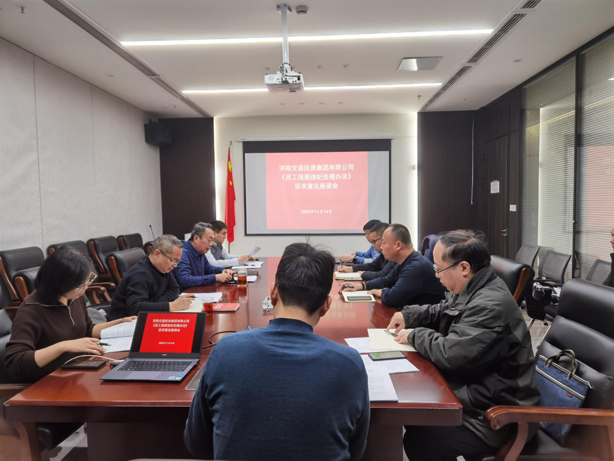 來(lái)源: 本站 發(fā)布時(shí)間: 2023-11-1411月14日,駐集團(tuán)紀(jì)檢監(jiān)察組到服務(wù)區(qū)公司紀(jì)委就《河南交通投資集團(tuán)有限公司員工違規(guī)行為處理辦法(征求意見(jiàn)稿)》開(kāi)展座談交流,征求意見(jiàn)建議。會(huì)議由服務(wù)區(qū)公司紀(jì)委書(shū)記王宜偉主持。