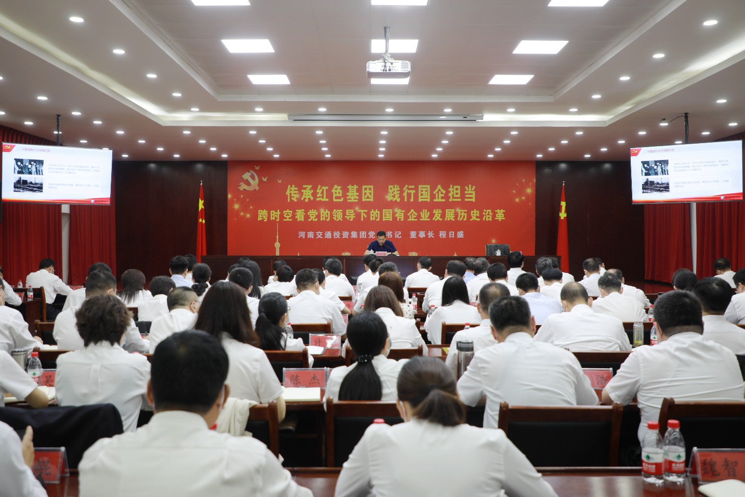 5月12日,集團黨委書記、董事長程日盛到交投服務區公司以《傳承紅色基因 踐行責任擔當——跨時空看黨的領導下的國有企業發展歷史沿革》為題,講了一堂內容豐富、深刻生動的專題黨課。集團相關領導及集團黨委辦公室、綜合事務辦公室、投資發展部、人力資源部、營運管理部、紀檢監察部主要負責人陪同出席。公司班子成員、部門中層及所屬單位班子成員、所屬各黨支部書記共120余人參加學習。