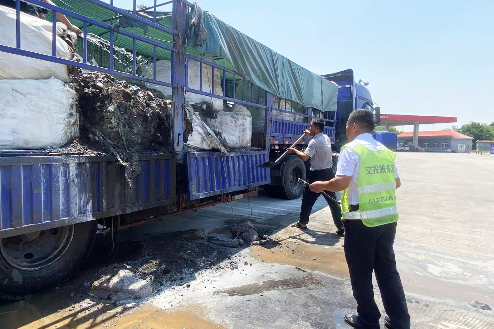 商丘東服務(wù)區(qū)妥善處置貨車自燃顯擔(dān)當(dāng)